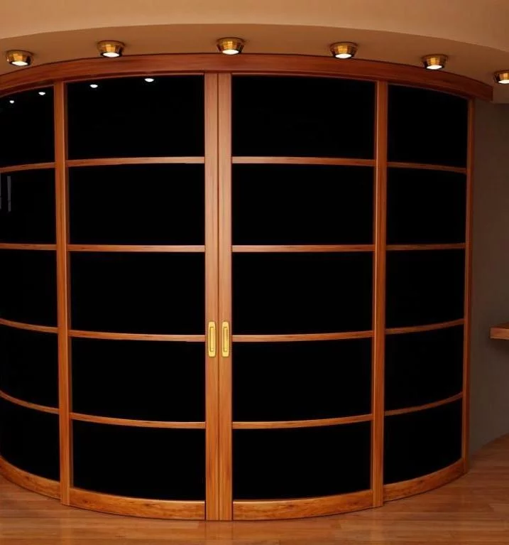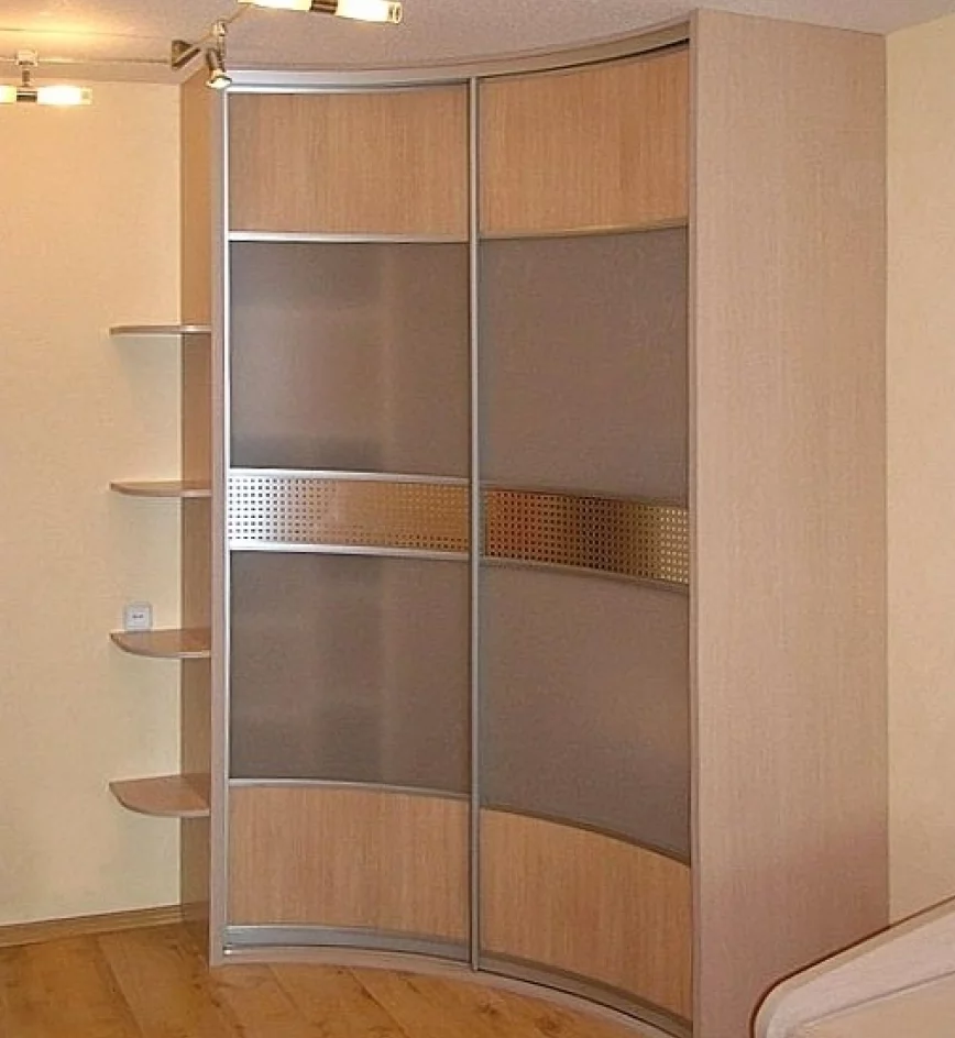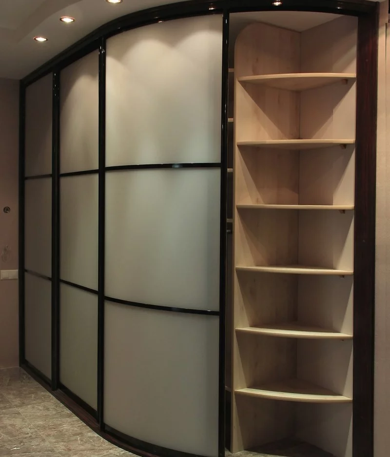 Хотите увеличить место для хранения вещей в шкафу - выбирайте вариант с выгнутыми дверями, в центральной части глубина составит 800 - 1500 мм.